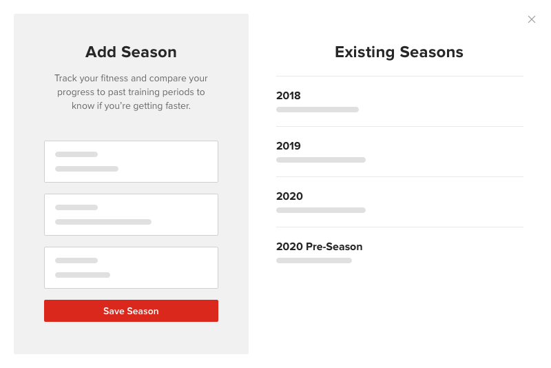 Go deeper with year-over-year comparisons. Whether you want to see how your fitness has changed from road to cyclocross season in the same year, or from one training phase to the next, Seasons compare PRs from any timeframe you wish.